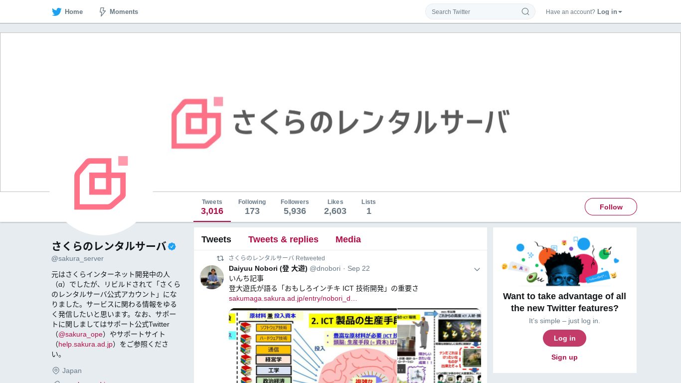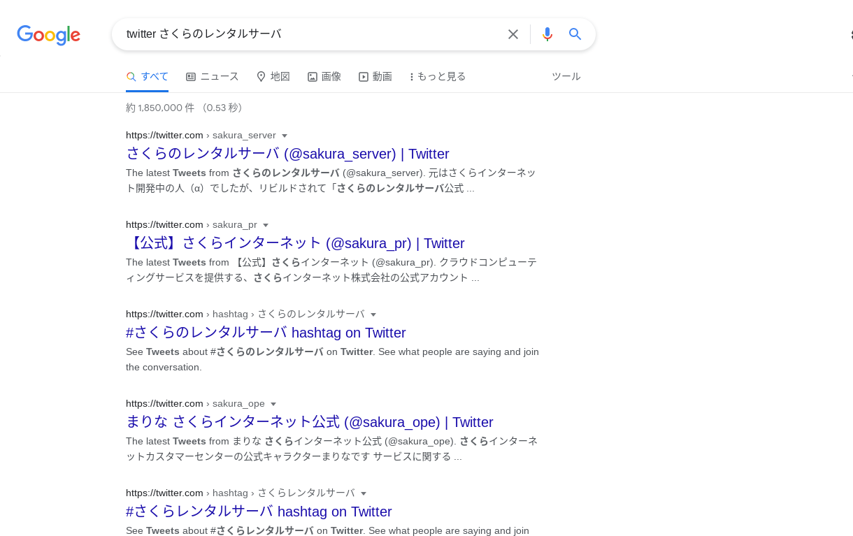 - 「twitter <ツイッターでみたいものをここに入力>」と検索 (僕は、さくらのレンタルサーバで検索しました。)