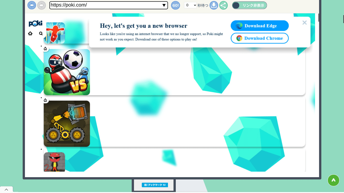 - テストとして、ブロックされているサイト(poki.jp)に入ってみようと思います。