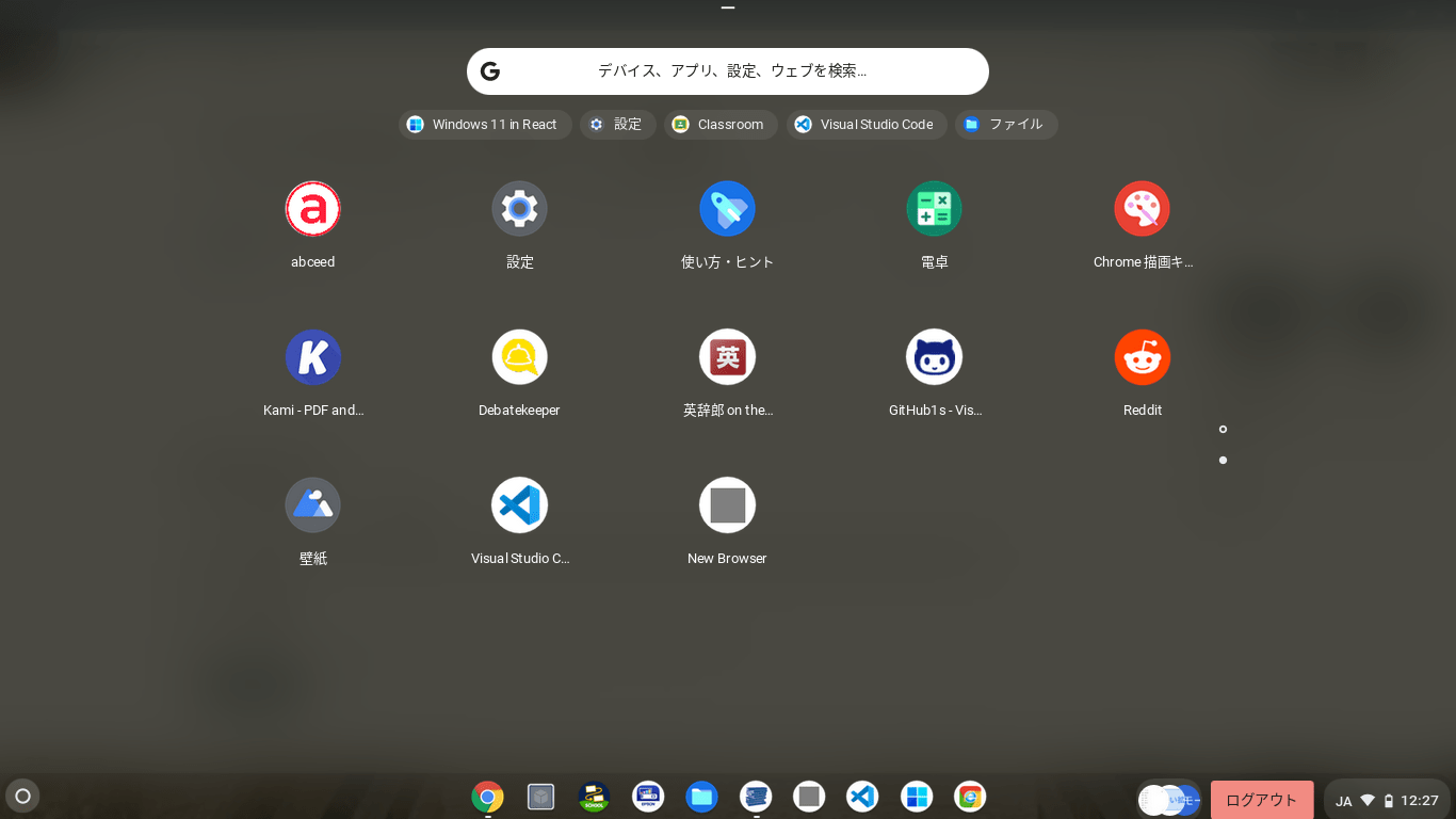 - ランチャー(アプリリスト)を開く